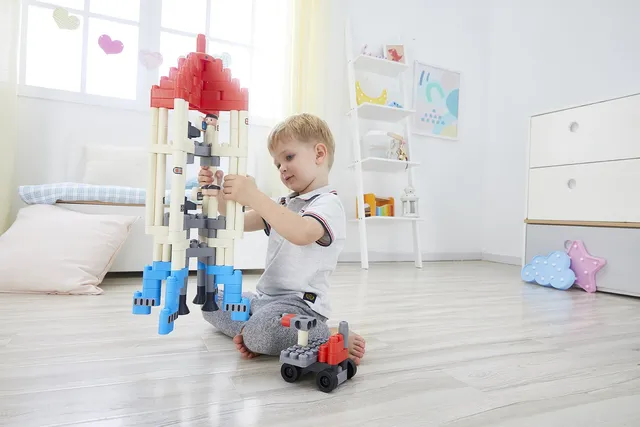 積木造型多樣,能自由連接創作車子、動物或建築,激發孩子的想像力與手眼協調。