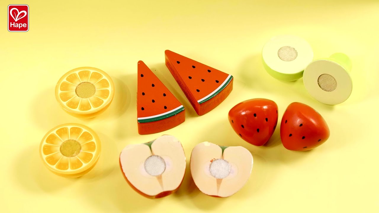 - The set includes: This toy set is perfect for teaching children about the characteristics of fruits, including two strawberries, one pear, one orange, one apple, and a realistic, child-safe toy knife. Some fruits even come with detachable stems.